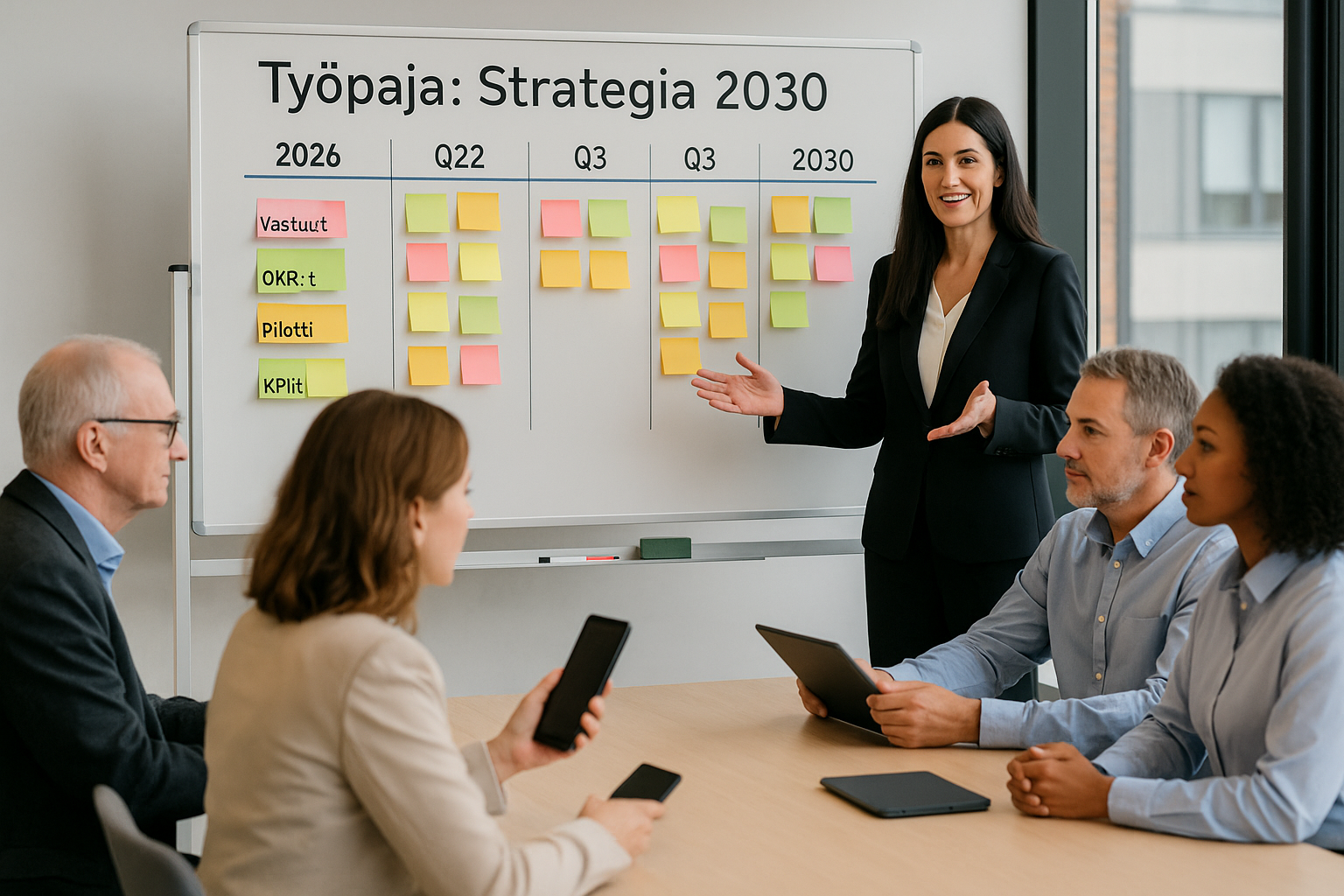 Onko strategianne "yläpilveä", josta ei saa otetta? Työstetään strategian tavoitteet yhdessä konkreettisiksi, vaikuttaviksi ja mitattaviksi toimenpiteiksi.